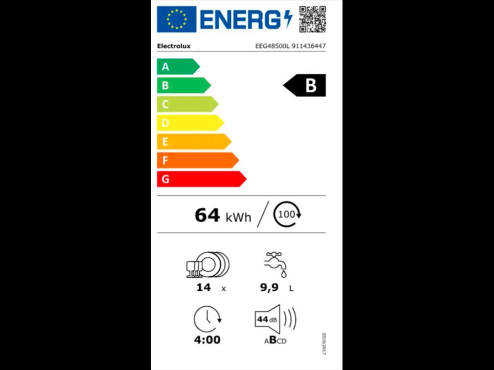 Vestavná myčka ELECTROLUX 700 GlassCare EEG48500L je v energetické třídě B. Dá vám záruku nízké spotřeby energie a zachování vysoké kvality mytí. Spotřeba elektrické energie při spuštění jejího ekologického programu odpovídá 64 kWh. Můžete do ní vložit až 14 jídelních sad nádobí pro jedno mytí. Úsporný program pro mytí smíšeného nádobí a příborů trvá po dobu 4 h. Díky myčce použijete mnohem méně vody, než kdybyste myli nádobí ručně pod tekoucí vodou. Spotřebu vody v programu ECO umí snížit až na 9,9 l. Rozměry vestavné myčky na nádobí ELECTROLUX jsou 81,8 × 59,6 × 56 cm (vך×h).