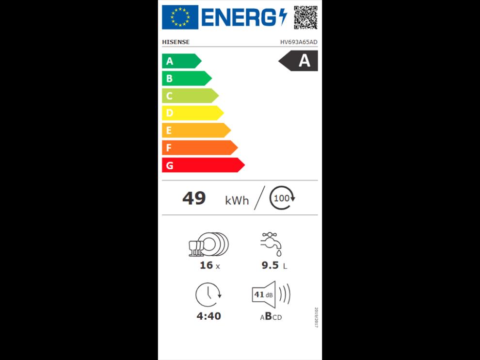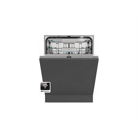 Plně integrovaná myčka Hisense s automatickým otevíráním dveří a dotykovým ovládáním. Energetická třída A, indikátor konce mytí a celková kapacita 16 sad nádobí.
