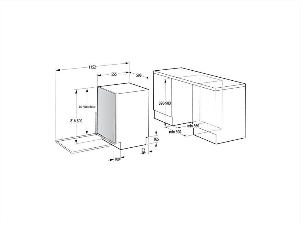 Jedná se o vestavný spotřebič, čelní dvířka nejsou součástí dodávky.