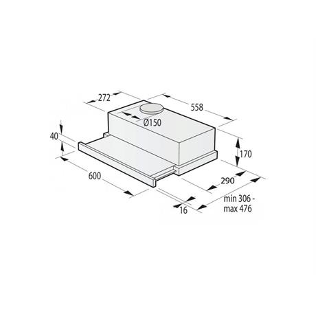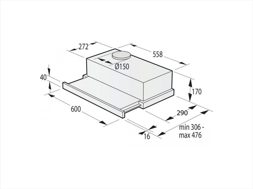 - Typ instalace: Vestavný výsuvný odsavač, instalace do skříňky
