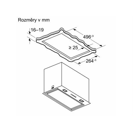 vestavný odsavač par • šířka 52 cm • max. výkon odtahu 755 m3/h • max. hlučnost 63 dB • ovládání: elektronické – tlačítkové • 3 stupně výkonu • intenzivní stupeň s automatickým zpětným nastavením 6 min. • možnost odtahu i recirkulace • kovový tukový filtr • LED osvětlení • funkce stmívání • softLight: plynulé zapínání a vypínaní světla • tichý motor iQdrive • automatické upozornění na čištění filtru • příkon 172 W • doběh ventilátoru 10 min • průměr odtahového hrdla 15 cm