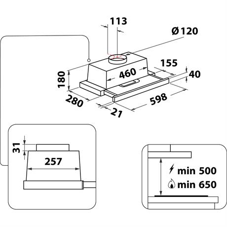 Integrovaný odsavač par - ideální do kuchyní, kde není přímo na očích.