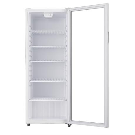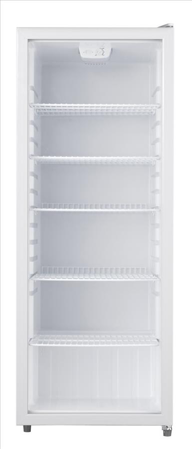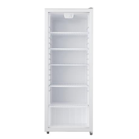 Volně stojící moderní chladící vitrína o objemu 245l a s 5 drátěnými policemi.