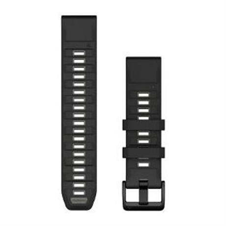 Řemínek k hodinkám. Garmin QuickFit 22 Band Black/Gray Silicone. . Materiál řemínku: Silikon. Šířka řemínku: 22 mm. Délka nastavitelného dílu: 124 mm. Délka dílu s přezkou: 95 mm. Typ zapínání: Standardní přezka. Barva: Černá/Šedá. Kompatibilita: fenix 5, 6, 7 (47 mm), epix (Gen 2) 47 mm, Forerunner 935, 945, 955, 965, MARQ, Approach S60/S70, D2 Delta/Mach 1, Descent G1, Quatix