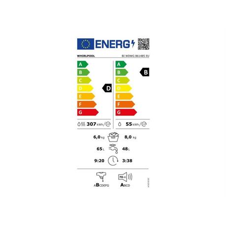 | Spotřeba vody pro celý cyklus praní a sušení v litrech na cyklus (EU2017/1369) | 65 |