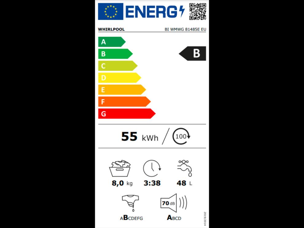 Tato pračka Whirlpool má vynikající energetickou třídu B.