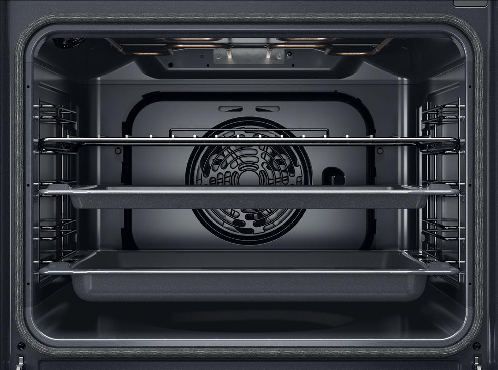 Přednosti této vestavné trouby Whirlpool: pokročilá elektrická technologie umožňující připravovat pokrmy s úsporou energie. Inovativní funkce Cook3, která umožňuje péct až tři různé pokrmy najednoubez rizika smíchání vůní.