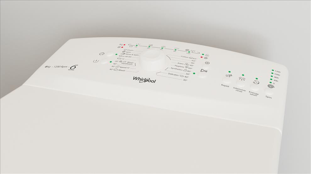 Tato pračka Whirlpool nabízí kapacitu bubnu 6 kg pro vaše prádlo.