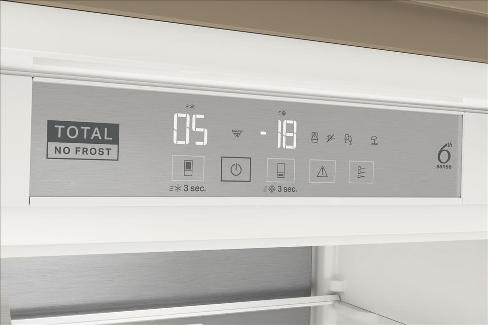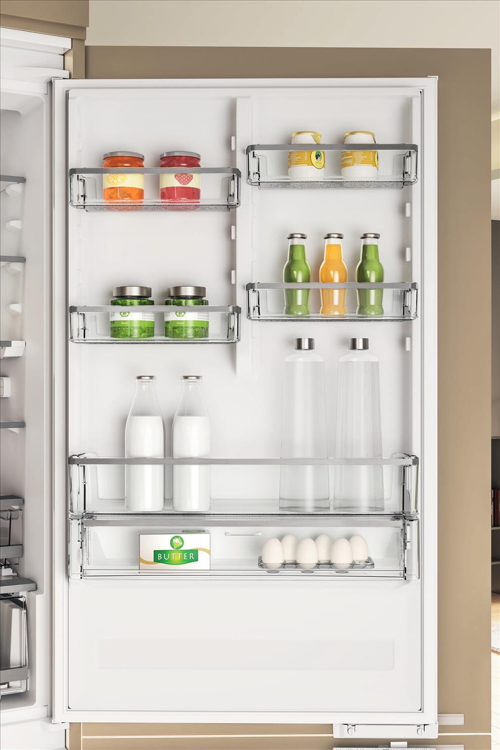 Nová vestavná Total No Frost chladnička s mrazničkou nabízí největší kapacitu* ve své kategorii, která dosahuje 394 litrů díky dodatečné šířce 15 cm a o 50 % většímu** úložnému prostoru.