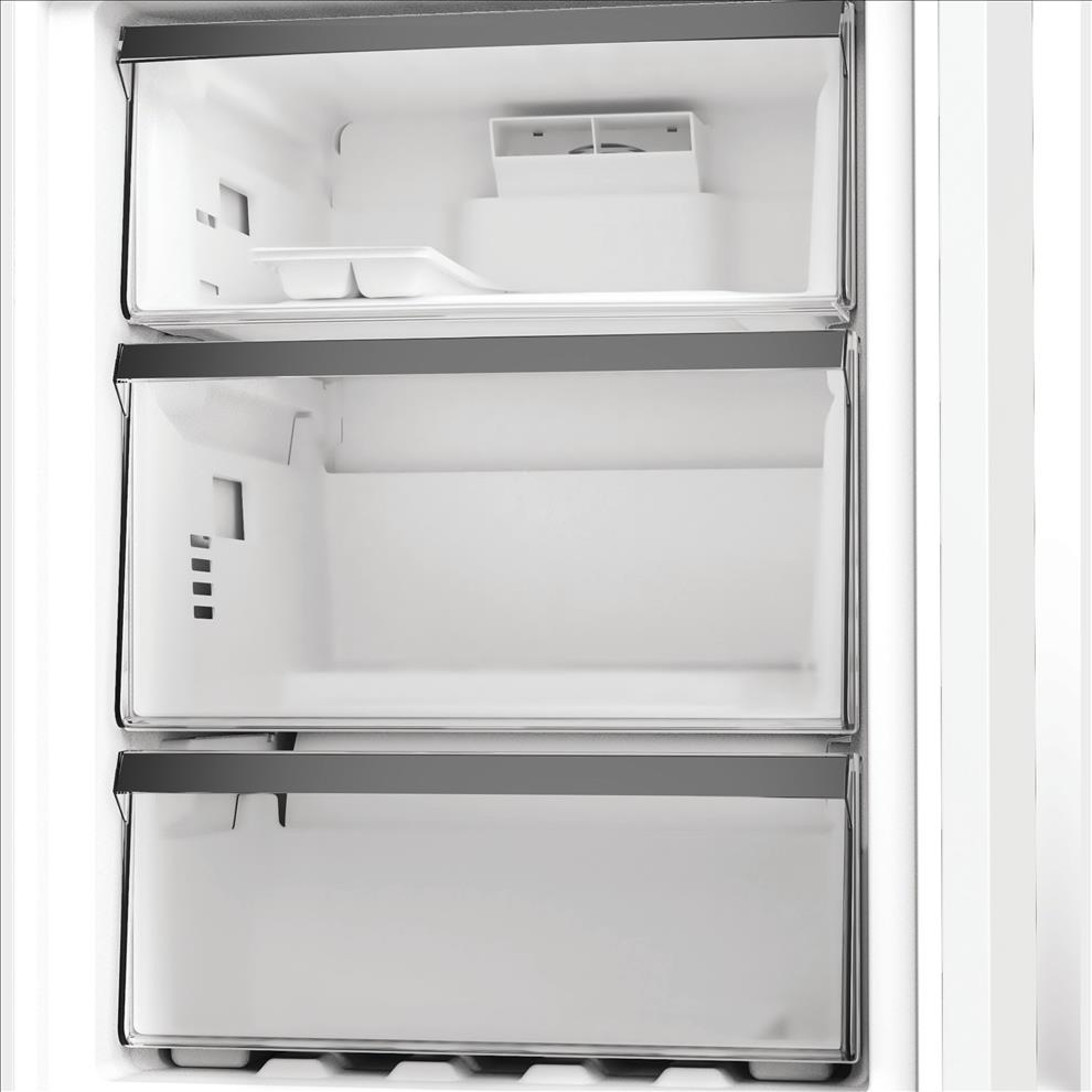 Přednosti této volně stojící kombinované chladničky Whirlpool: technologie No frost, beznámrazová technologie, která účinně zabraňuje tvorbě ledu v mrazničce tím, že snižuje úroveň vlhkosti. Vysoký spotřebič, který vyhoví potřebám vaší rodiny. Skleněné police, které poskytují pevnost i eleganci. Ventilátor, který zajišťuje plynulé a rovnoměrné proudění vzduchu v prostoru spotřebiče pro doonalou cirkulaci vzduchu. Funkce prázdninového režimu, která snižuje spotřebu energie, když jste pryč.