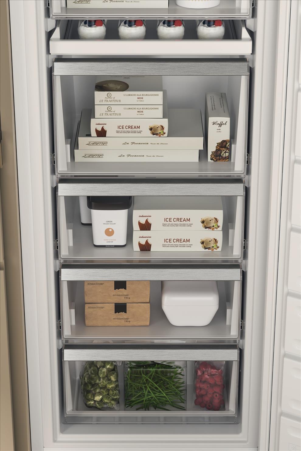 Přednosti této vestavné vysoké skříňové mrazničky Whirlpool: bílá barva. Beznámrazová technologie No Frost, která snižuje vlhkost uvnitř mrazničky a účinně zabraňuje tvorbě ledu. Technologie FastFreezing, která zmrazuje potraviny rychleji, aby byla chráněna jejich chuť, struktura a nutriční hodnoty. Exkluzivní technologie 6. SMYSL, která monitoruje teplotu uvnitř mrazničky a automaticky zvyšuje mrazení pouze v případě potřeby. Úsporná a ekologická.