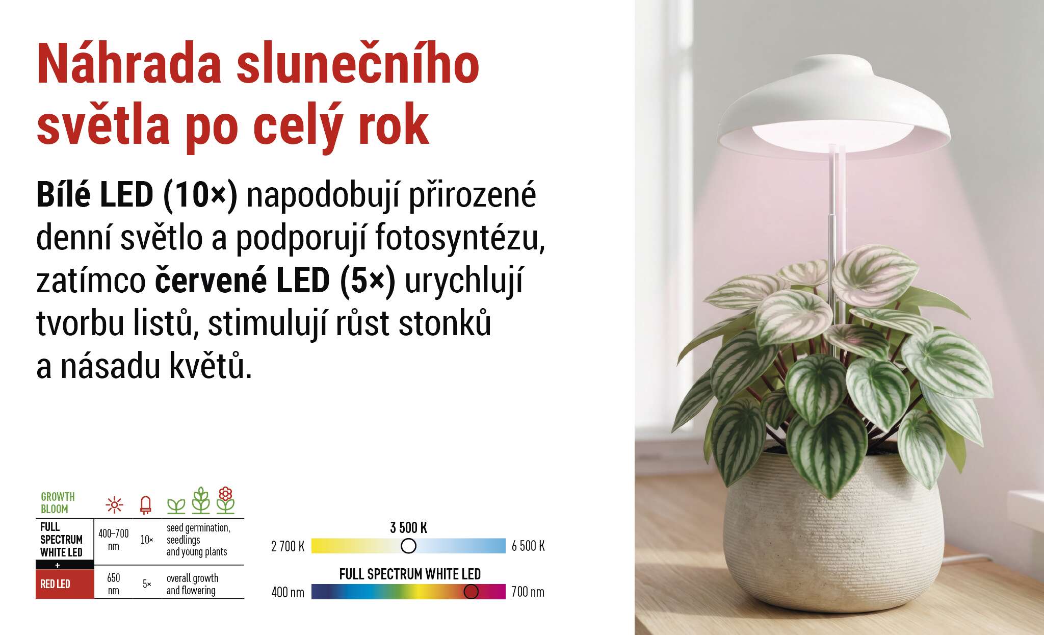 PODPORA RŮSTU PO CELÝ ROK - Rostliny prospívají i v zimě a tmavých místnostech.