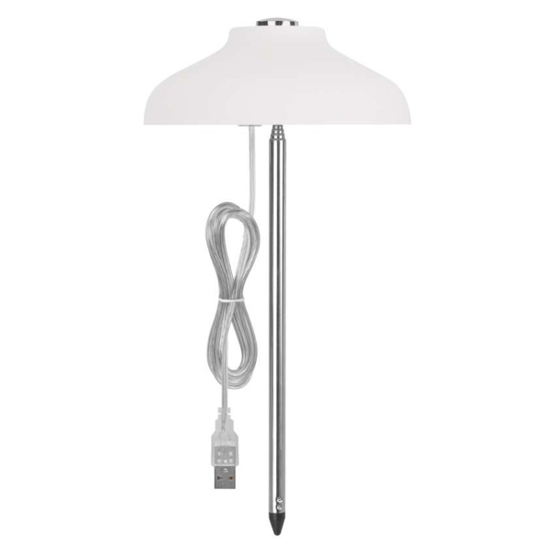 barva: bílá|barva světla: denní bílá/červená|činitel stárnutí: –|čip LED: –|délka přívodního kabelu: 1,5 m|energetická třída: –|energetická třída (od 1.9.2021): –|index podání barev (CRI): Ra > 85|integrovaná nabíjecí baterie: ne|krytí: IP20|materiál: plast + kov|max. výkon: 5 W|napájecí zdroj: USB-A kabel|napájecí zdroj součástí balení: ne|napětí: 5 V DC/2 000 mA|obsah rtuti: –|patice (uchycení žárovky): –|počet LED: 15|počet spínacích cyklů: 12 500|příkon: 5 W|prodejní obal: 1 ks, krabice|rozměr: 110 × 110 × 220 mm|rychlost náběhu na 100 %: –|stmívání: ne|světelný tok: 235 lm|teplota chromatičnosti: 3 500 K|typ napájení: USB|účiník: –|USB port: ne|životnost: 25 000 hodin