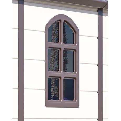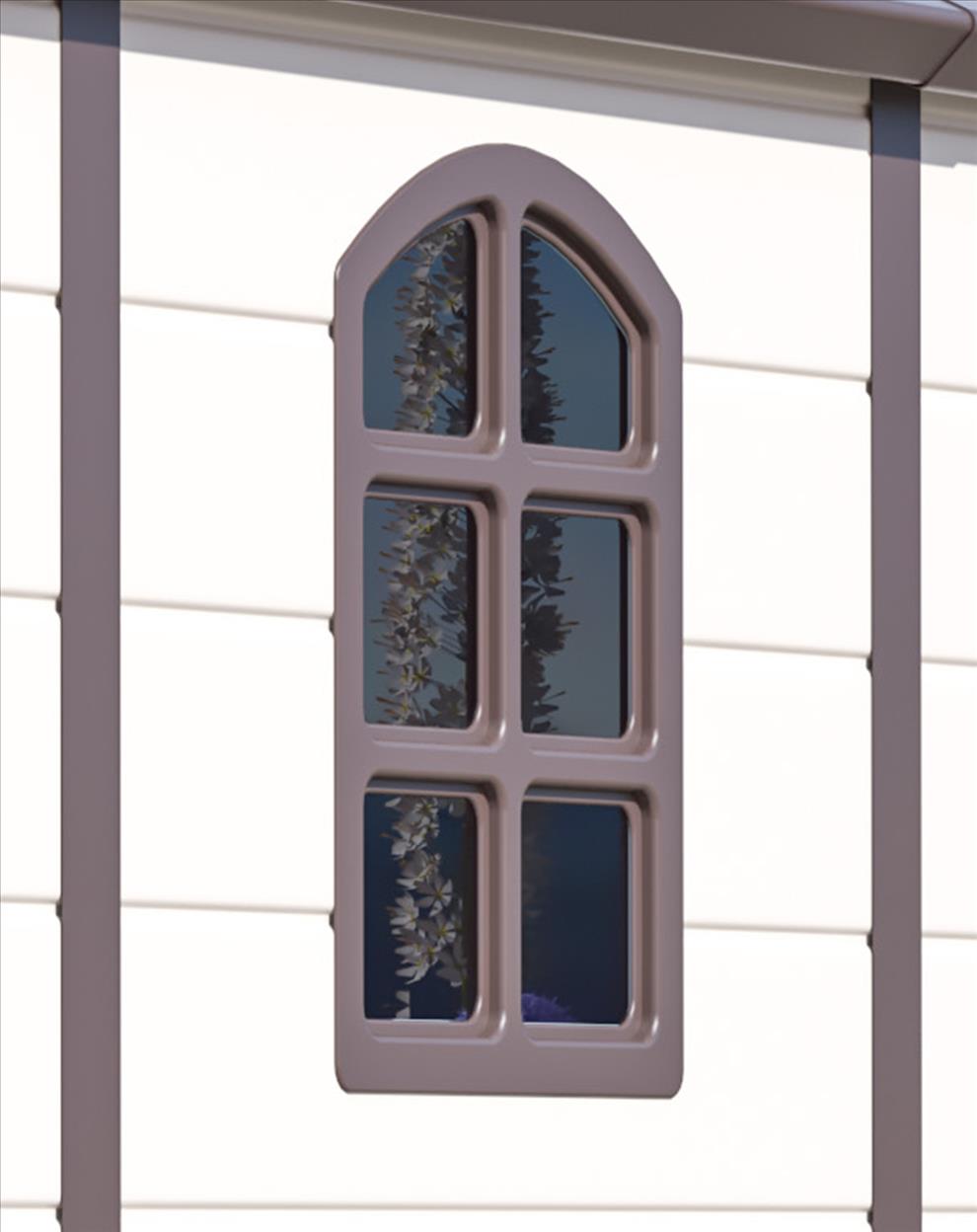 V žádném pořádném zahradním domku nesmí chybět okénko. Ani u toho našeho nechybí, navíc si je můžete umístit kam chcete. Neomezujte se kvůli dostatku světla a nerozmýšlejte se, zda domek postavit ke zdi domu, nebo do volného prostoru. Dostatečné množství světla vás nebude limitovat. Okno si jednoduše umístěte na pravou nebo levou stranu domku, podle aktuální potřeby.
