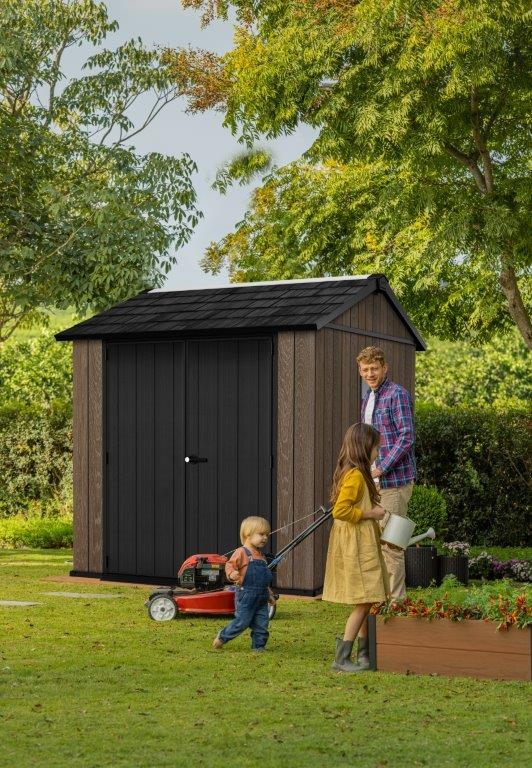 Keter využívá speciální materiál DECOCOAT, který věrně imituje vzhled přírodního dřeva, ale na rozdíl od něj nevyžaduje žádnou údržbu. Je plně odolný vůči UV záření, extrémním výkyvům počasí a neztrácí svůj vzhled ani po letech. Stačí jej občas otřít vlhkým hadříkem.
