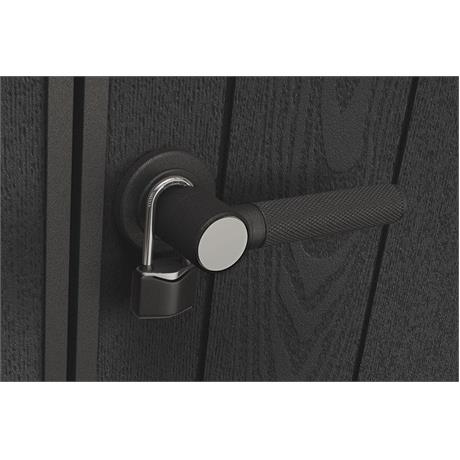 Zahradní domek je vybavený silnou střechou, která je vyztužená ocelí. Vydrží zatížení až do 200 kg/m², takže hravě odolá i haldě sněhu. Má dvojité dveře a malá okénka, skrze které se dovnitř dostane sluneční svit. Výrobce se také postaral o vhodný ventilační systém. Do domku se dostane dostatek vzduchu, který brání hromadění vlhkosti. Přední dveře jsou opatřeny západkou, na kterou lze nasadit visací zámek pro větší bezpečnost.