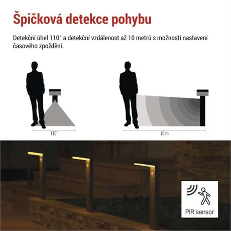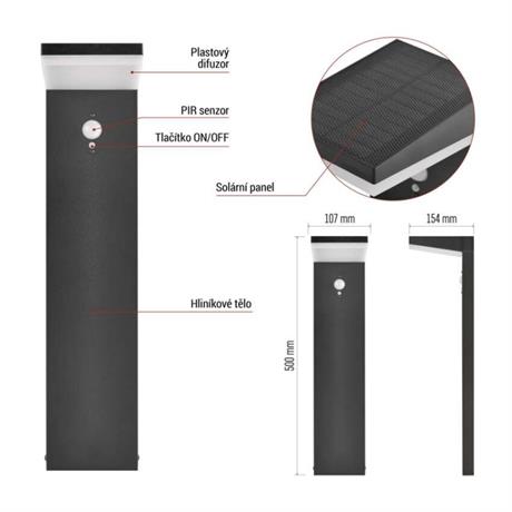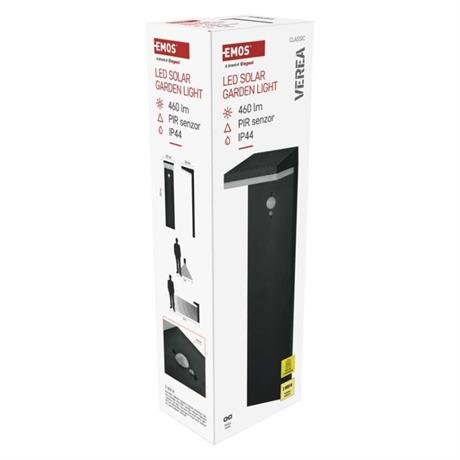 barva: černá|barva světla: teplá bílá|dosah PIR senzoru: 10 m|energetická třída použitého světelného zdroje: –|fotovoltaický článek: 2,1 W|frekvence: –|index podání barev (CRI): > 80|kategorie: CLASSIC|krytí: IP44|materiál: hliník (Al)|materiál difuzoru: plast|napájení: Li-Ion akumulátor 3,7 V/2 200 mAh|napětí: –|patice (uchycení žárovky): –|PIR senzor: ano|příkon: 4,4 W|prodejní obal: 1 ks, krabička|řada: VEREA|rozměr: 154 × 107 × 500 mm|rozsah pracovní teploty: 0 ~ +40 °C|soumrakový spínač: ano|světelný tok: max. 460 lm|teplota chromatičnosti: 3000 K|vestavěný vypínač: ano|žárovka součástí balení: –|zdroj světla: LED|životnost: 25 000 h