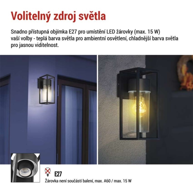 EMOS Zahradní nástěnné svítidlo TILLIA, 13,2 x 11 x 27 cm, 1 x E27, 15 W