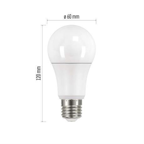 barva světla: teplá bílá|energetická třída: F|index podání barev (CRI): 83|kompatibilita: –|náhrada za žárovku: 75 W|napětí: 230 V~/50 Hz|notifikace do mobilní aplikace: –|ovládání hlasovými asistenty: –|patice (uchycení žárovky): E27|počet čipů: neuvádí se|počet spínacích cyklů: 25 000|podporované OS: –|přenosová frekvence: –|příkon: 10,7 W|prodejní obal: 1 ks, krabička|protokol: –|řada: CLASSIC|rozměr: 120 × 60 × 60 mm|stmívatelná: ne|světelná účinnost: 99 lm/W|světelný tok: 1 060 lm|technologie: LED|teplota chromatičnosti: 2 700 K|tvar: A60|typ čipů: SMD|účiník: 0,56|úhel vyzařování: 180°|záruční doba: 3 roky|životnost: 30 000 hodin