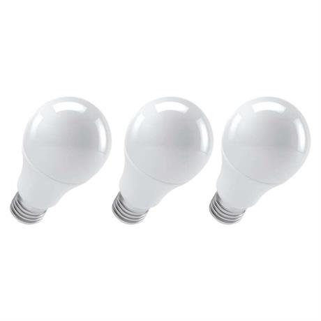 barva světla: teplá bílá|energetická třída: F|index podání barev (CRI): 83|kompatibilita: –|náhrada za žárovku: 75 W|napětí: 230 V~/50 Hz|notifikace do mobilní aplikace: –|ovládání hlasovými asistenty: –|patice (uchycení žárovky): E27|počet čipů: neuvádí se|počet spínacích cyklů: 25 000|podporované OS: –|přenosová frekvence: –|příkon: 10,7 W|prodejní obal: 3 ks, krabička|protokol: –|řada: CLASSIC|rozměr: 120 × 60 × 60 mm|stmívatelná: ne|světelná účinnost: 99 lm/W|světelný tok: 1 060 lm|technologie: LED|teplota chromatičnosti: 2 700 K|tvar: A60|typ čipů: SMD|účiník: 0,56|úhel vyzařování: 180°|záruční doba: 3 roky|životnost: 30 000 hodin