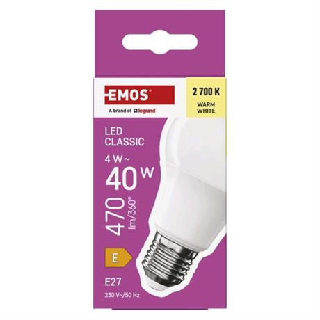 EMOS LED žárovka Classic A60 / E27 / 4 W (40 W) / 470 lm / teplá bílá