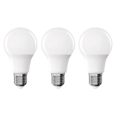 barva světla: teplá bílá|energetická třída: E|index podání barev (CRI): 80|kompatibilita: –|náhrada za žárovku: 60 W|napětí: 230 V~/50 Hz|notifikace do mobilní aplikace: ne|ovládání hlasovými asistenty: ne|patice (uchycení žárovky): E27|počet čipů: neuvádí se|počet spínacích cyklů: 30 000|podporované OS: –|přenosová frekvence: –|příkon: 7 W|prodejní obal: 3 ks, krabička|protokol: –|řada: CLASSIC|rozměr: 60 × 60 × 107 mm|stmívatelná: ne|světelná účinnost: 115 lm/W|světelný tok: 806 lm|technologie: LED|teplota chromatičnosti: 2 700 K|tvar: A60|typ čipů: SMD|účiník: 0,50|úhel vyzařování: 180°|záruční doba: 3 roky|životnost: 30 000 hodin