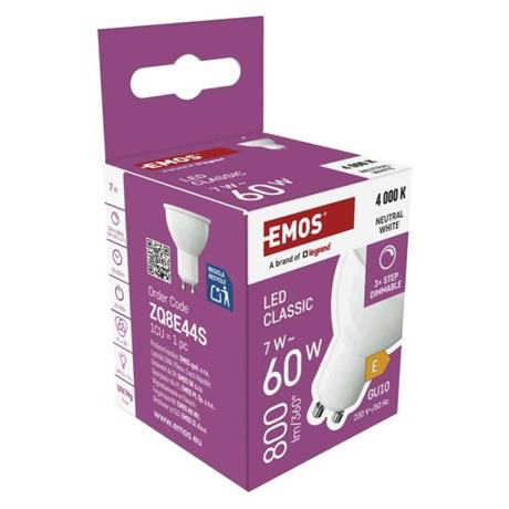 barva světla: neutrální bílá|energetická třída: E|index podání barev (CRI): 80|kompatibilita: neuvádí se|náhrada za žárovku: 60 W|napětí: 230 V~/50 Hz|notifikace do mobilní aplikace: neuvádí se|ovládání hlasovými asistenty: neuvádí se|patice (uchycení žárovky): GU10|počet čipů: neuvádí se|počet spínacích cyklů: 25 000|podporované OS: neuvádí se|přenosová frekvence: neuvádí se|příkon: 7 W|prodejní obal: 1 ks, krabička|protokol: neuvádí se|řada: CLASSIC|rozměr: 50 × 50 × 58 mm|stmívatelná: ano|světelná účinnost: 114 lm/W|světelný tok: 800 lm|technologie: LED|teplota chromatičnosti: 4 000 K|tvar: MR16|typ čipů: SMD|účiník: 0,58|úhel vyzařování: 100°|záruční doba: 3 roky|životnost: 25 000 hodin