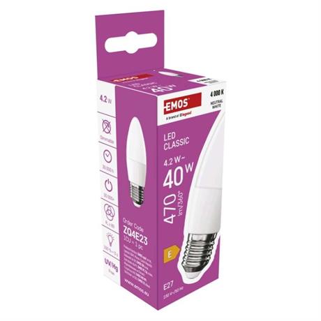 EMOS LED žárovka Classic svíčka / E27 / 4,2 W (40 W) / 470 lm / neutrální bílá