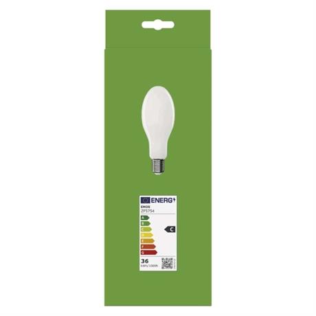 barva světla: neutrální bílá|energetická třída: C|index podání barev (CRI): 80|kompatibilita: neuvádí se|náhrada za žárovku: 327 W|napětí: 230 V~/50 Hz|notifikace do mobilní aplikace: neuvádí se|ovládání hlasovými asistenty: neuvádí se|patice (uchycení žárovky): E40|počet čipů: neuvádí se|počet spínacích cyklů: neuvádí se|podporované OS: neuvádí se|přenosová frekvence: neuvádí se|příkon: 36 W|prodejní obal: 1 ks, krabička|protokol: neuvádí se|řada: FILAMENT|rozměr: 90 × 90 × 230 mm|stmívatelná: ne|světelná účinnost: 167 lm/W|světelný tok: 6 000 lm|technologie: LED|teplota chromatičnosti: 4 000 K|tvar: ED90|typ čipů: COB|účiník: 0,97|úhel vyzařování: 330°|záruční doba: 3 roky|životnost: 25 000 hodin