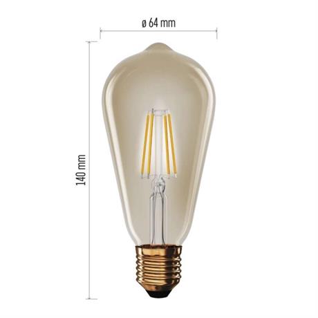 barva světla: teplá bílá|energetická třída: F|index podání barev (CRI): 80|kompatibilita: neuvádí se|náhrada za žárovku: 40 W|napětí: 230 V~/50 Hz|notifikace do mobilní aplikace: neuvádí se|ovládání hlasovými asistenty: neuvádí se|patice (uchycení žárovky): E27|počet čipů: 4|počet spínacích cyklů: 25 000|podporované OS: neuvádí se|přenosová frekvence: neuvádí se|příkon: 4,5 W|prodejní obal: 1 ks, krabička|protokol: neuvádí se|řada: VINTAGE|rozměr: 64 × 64 × 140 mm|stmívatelná: ne|světelná účinnost: 93 lm/W|světelný tok: 420 lm|technologie: LED|teplota chromatičnosti: 2 200 K|tvar: ST64|typ čipů: COB|účiník: 0,40|úhel vyzařování: 320°|záruční doba: 3 roky|životnost: 25 000 hodin