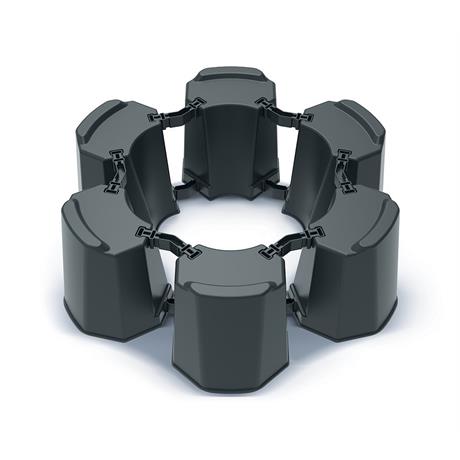 Sada MODULAR BASECAN SET umožňuje vytvořit podstavec podle velikosti nádrže na dešťovou vodu. Pro podstavec o průměru 470 až 556 mm se používá 6 modulů a 12 spojovacích prvků typu E. Pro větší variantu o průměru 600 až 673 mm se využívá 7 modulů a 14 spojovacích prvků typu F.