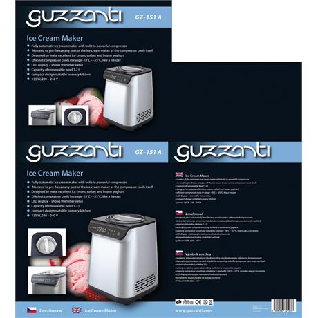 Vynikající krémovou zmrzlinu, sorbety a mražené jogurty vám zajistí Guzzanti GZ 151A. Navíc je tento model vybaven kompresorem, takže se přístroj nemusí vkládat do mrazáku.