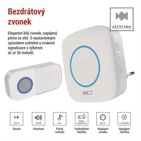 EMOS Domovní bezdrátový zvonek P5737 do zásuvky